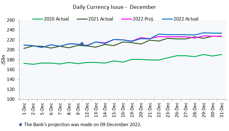 The Bank anticipates that most of the currency issued during December 2022 will be redeemed during January 2023. For the last five years, net currency redemption in January averaged 76.5 per cent of the net currency issued in the preceding month.